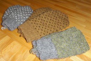 Stickade vantar och halvvantar i växtfärgat ullgarn